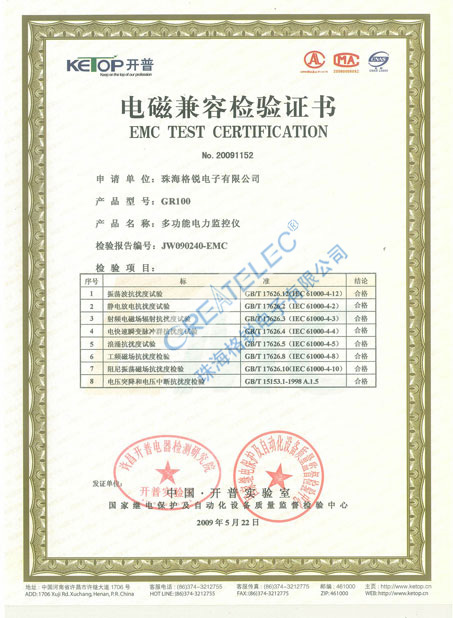 当前位置: 公司资质 型式检验报告/3C证书 > 多功能电力仪表
