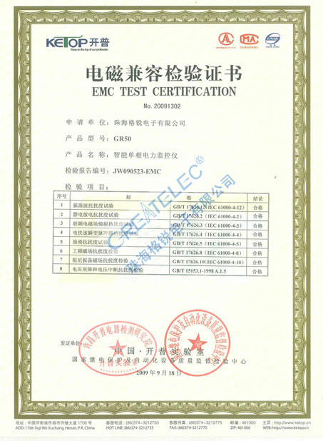 GR50电磁兼容检验证书