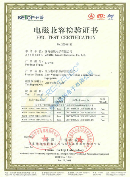 GR700电磁兼容检验证书