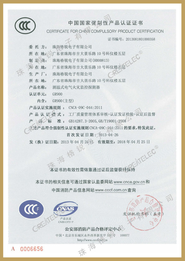 当前位置: 公司资质 型式检验报告/3C证书 > 电气火灾3C证书