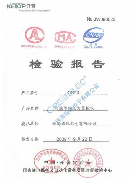 当前位置: 公司资质 型式检验报告/3C证书 > 单相电力仪表